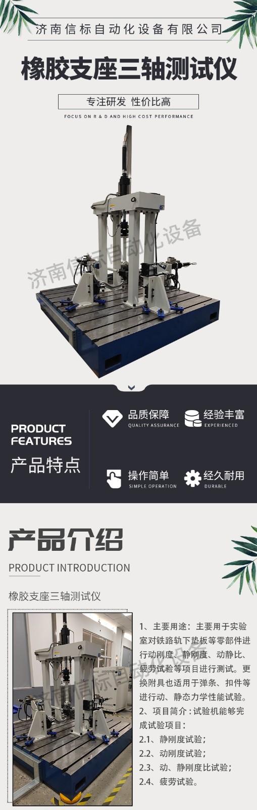 濟南信標自動化設備有限公司主要生產:動靜態萬能疲勞試驗機,接骨板彎曲試驗機,縫合線拉伸疲勞試驗機,髖膝關節磨損試驗機,電子萬能試驗機、液壓萬能試驗機、巖石三軸、四軸,電液拉力試驗機,材料試驗機,高低溫蠕變,高低頻疲勞,拉伸、扭轉、杯突等二十多個系列兩千多個的品種。