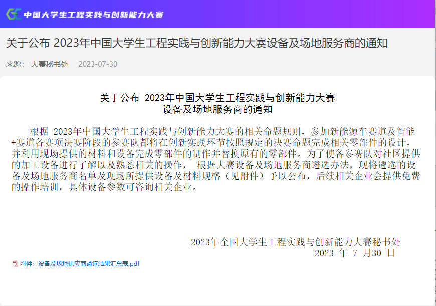 2023年10月13-15日,作為2023年中國大學(xué)生工程實(shí)踐與創(chuàng)新能力大賽國賽激光設(shè)備支持單位的華之尊激光同時(shí)為安徽賽區(qū)、福建賽區(qū)、廣東賽區(qū)、廣西賽區(qū)提供激光加工設(shè)備及激光技術(shù)支持,為大賽保駕護(hù)航,助力大賽圓滿收官!