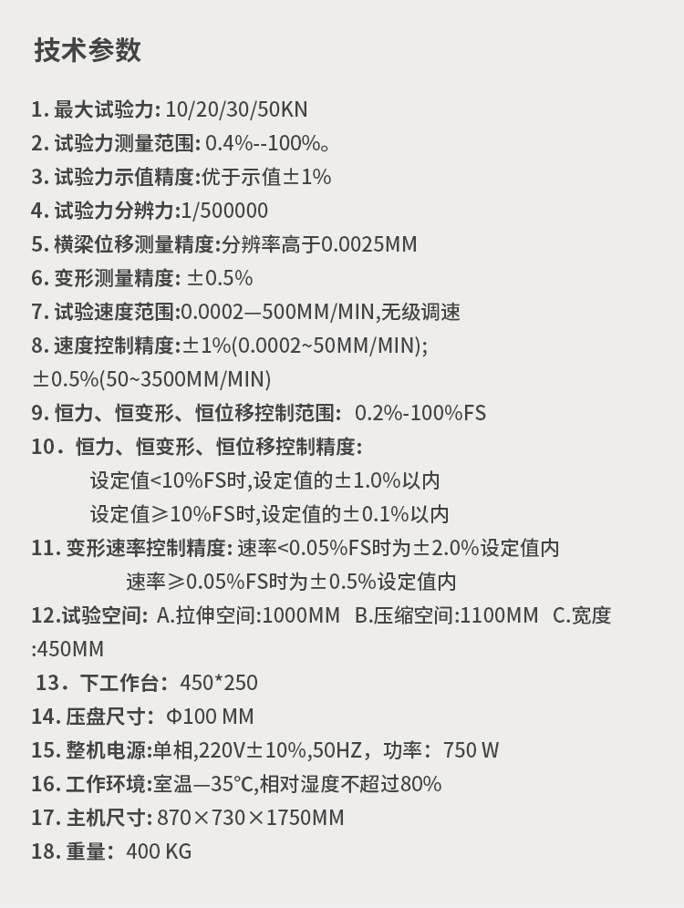 口罩隔離防護服抗拉強度試驗機技術參數