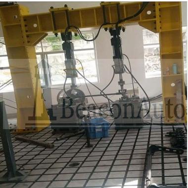 驅(qū)動(dòng)車橋疲勞試驗(yàn)機(jī) 前后橋耐久疲勞試驗(yàn)臺(tái) 驅(qū)動(dòng)車橋疲勞試驗(yàn)機(jī) 前后橋耐久疲勞試驗(yàn)臺(tái)產(chǎn)品用途: PMS-500驅(qū)動(dòng)車橋疲勞試驗(yàn)機(jī) 前后橋耐久疲勞試驗(yàn)臺(tái)主要適用于對(duì)各種大型零部件如:橋梁、桁架、汽車底盤、前后橋、機(jī)車車架、底盤及各種混凝土結(jié)構(gòu)件進(jìn)行靜態(tài)壓縮試驗(yàn)及動(dòng)態(tài)單向脈動(dòng)疲勞試驗(yàn)。該機(jī)具有設(shè)計(jì)可靠、操作簡(jiǎn)單、節(jié)約能源,運(yùn)行成本低廉等顯著特點(diǎn)。 驅(qū)動(dòng)車橋疲勞試驗(yàn)機(jī) 前后橋耐久疲勞試驗(yàn)臺(tái)主要技術(shù)指標(biāo): 1、動(dòng)態(tài)試驗(yàn)力:1000kN ; 2、靜態(tài)試驗(yàn)力:1000kN,示值精度±1%(20%FS起示值相對(duì)誤差); 3、工作頻率范圍:2-8Hz(無級(jí)可調(diào)); 4、脈動(dòng)器排量:800ml/次; 5、1000kN作動(dòng)器基本參數(shù) 5.1振幅:15mm; 5.2活塞行程:120mm; 5.3絲杠伸出量:450mm; 5.4加長(zhǎng)管長(zhǎng)度:500mm、1000mm; 5.5計(jì)算機(jī)滿量程顯示值:500.0; 5.6另有25kN、50kN、100kN、250kN、500kN等規(guī)格作動(dòng)器(特殊配件,需單獨(dú)購買)。 6、電機(jī)功率:22kW。