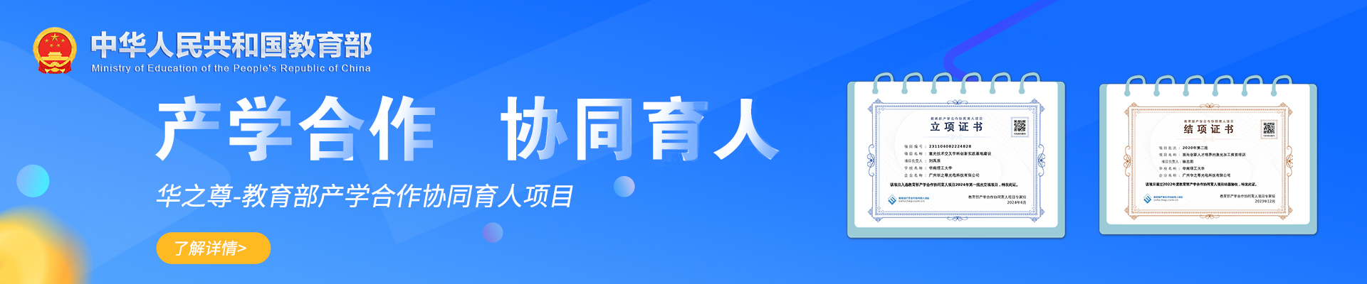 喜訊 | 教育部高等教育司公布2024年第一批產(chǎn)學合作協(xié)同育人項目立項名單!華之尊激光申報項目全部獲批!